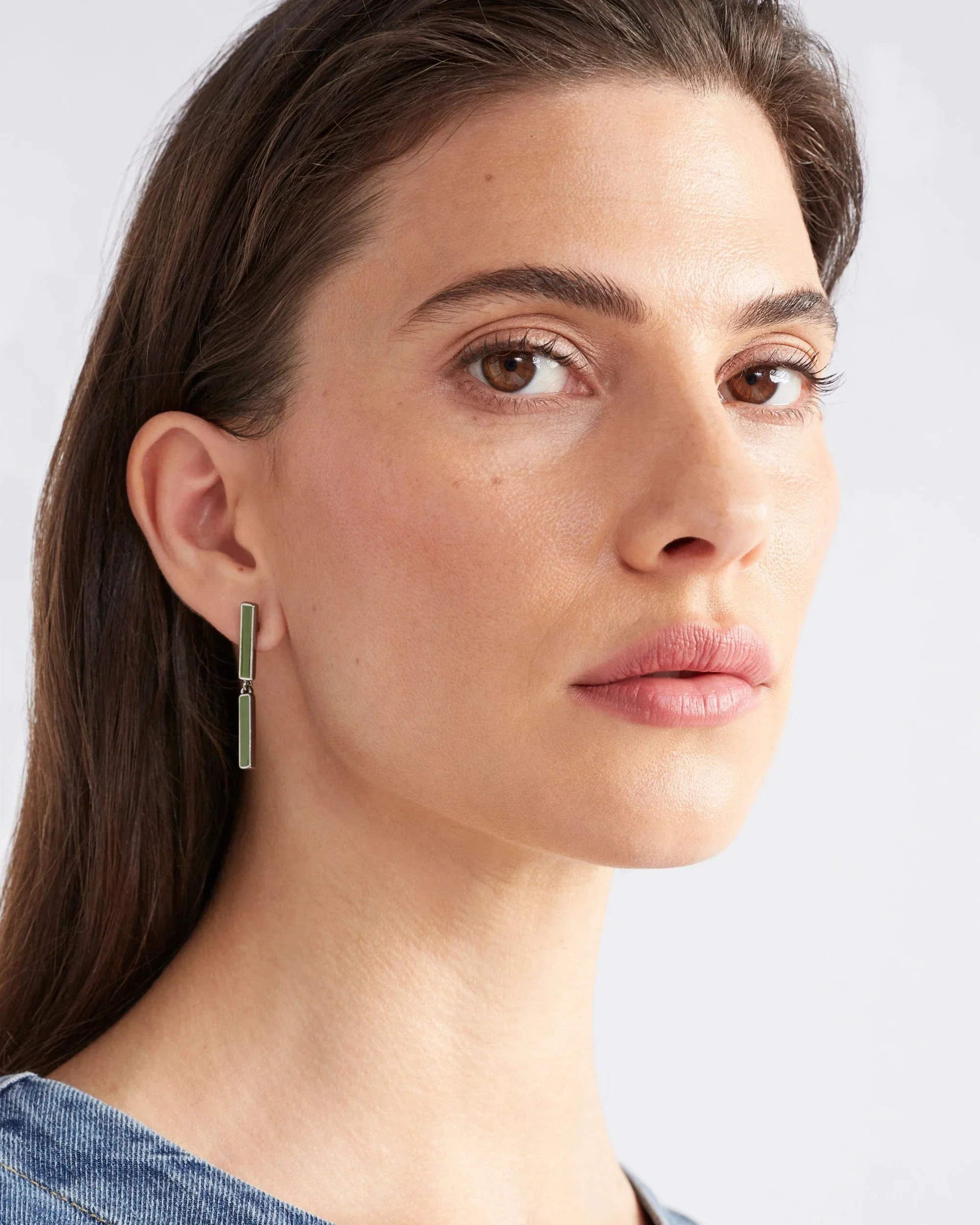 The Neli Short Drop Earring is a small, light-weight piece. Featuring two small rectangular enamel bars inlaid into a shiny metal base, these earrings sway with movement thanks to their jump-ring connection.Â